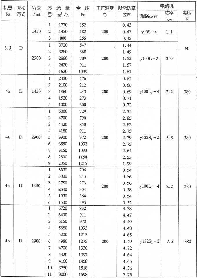 1, This series of fan is single suction type, fan transmission mode: C, D, type two.